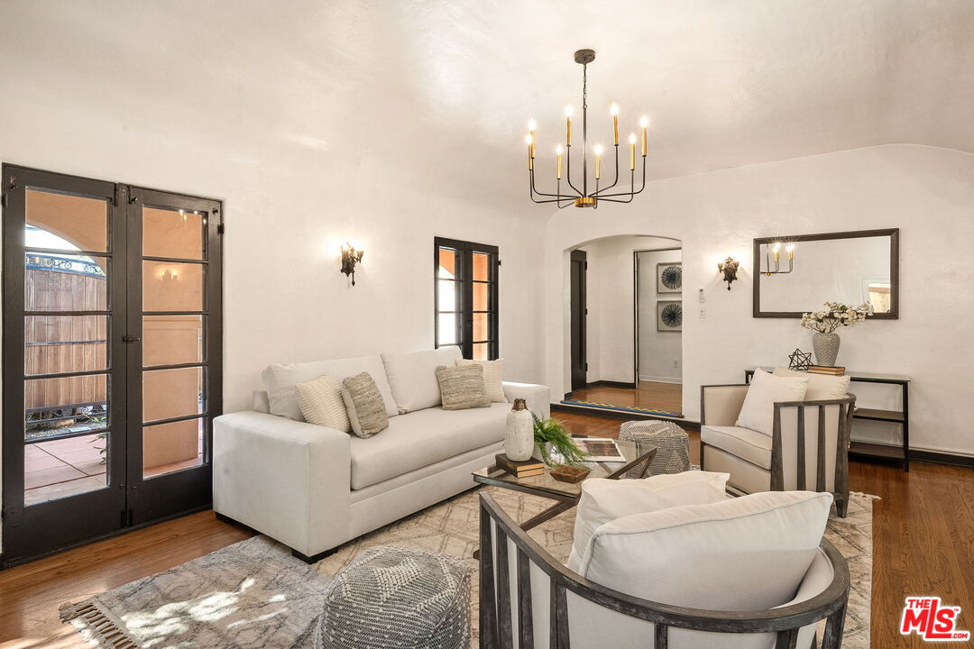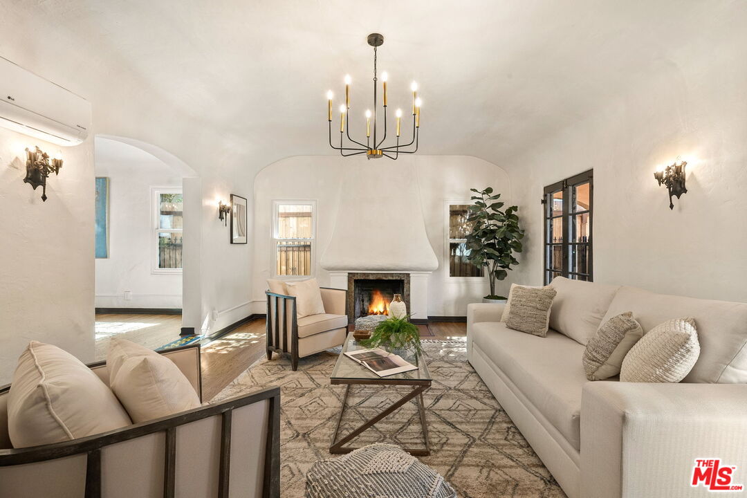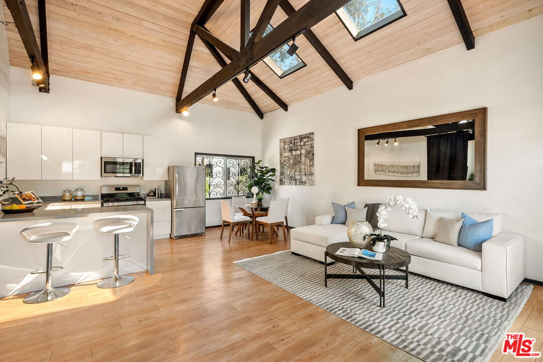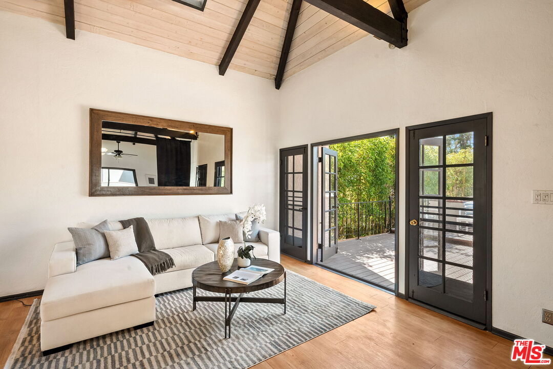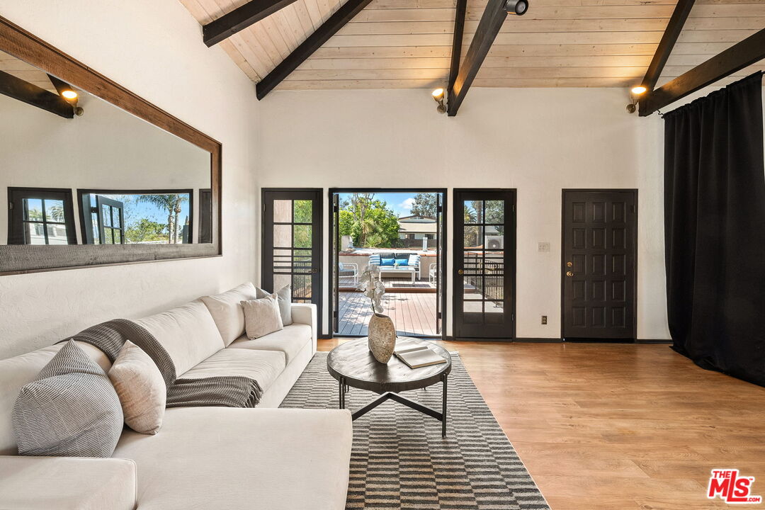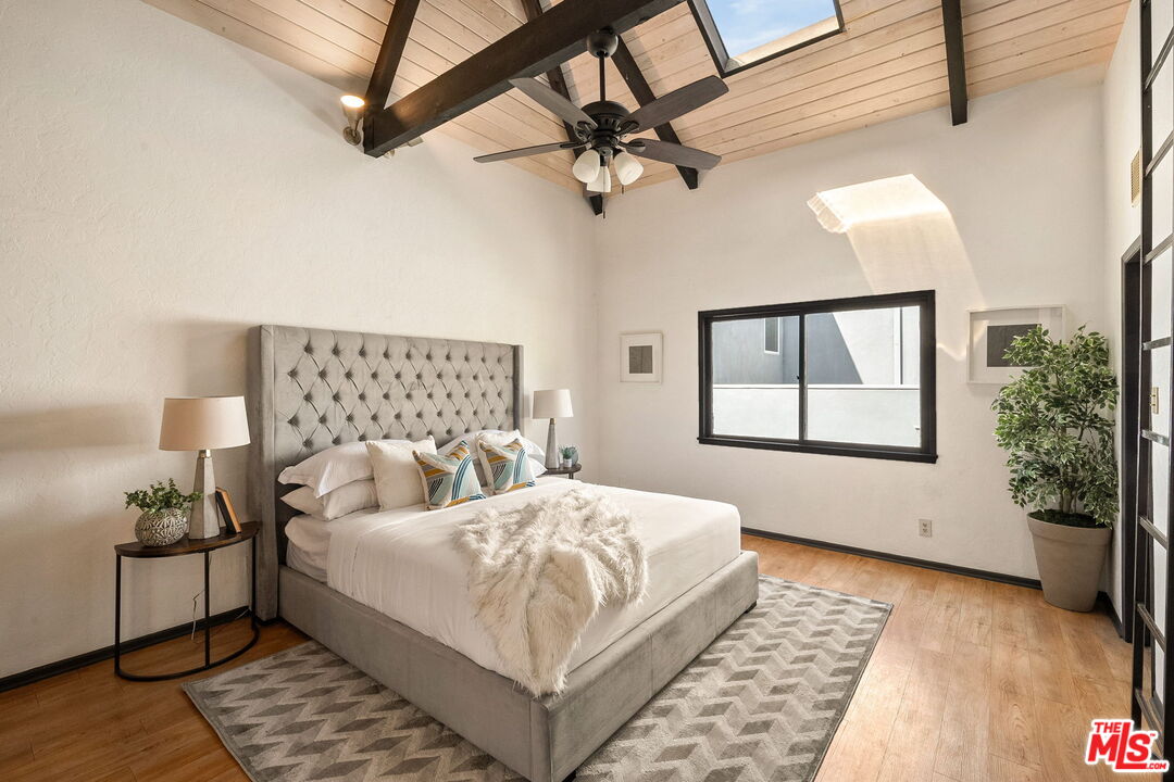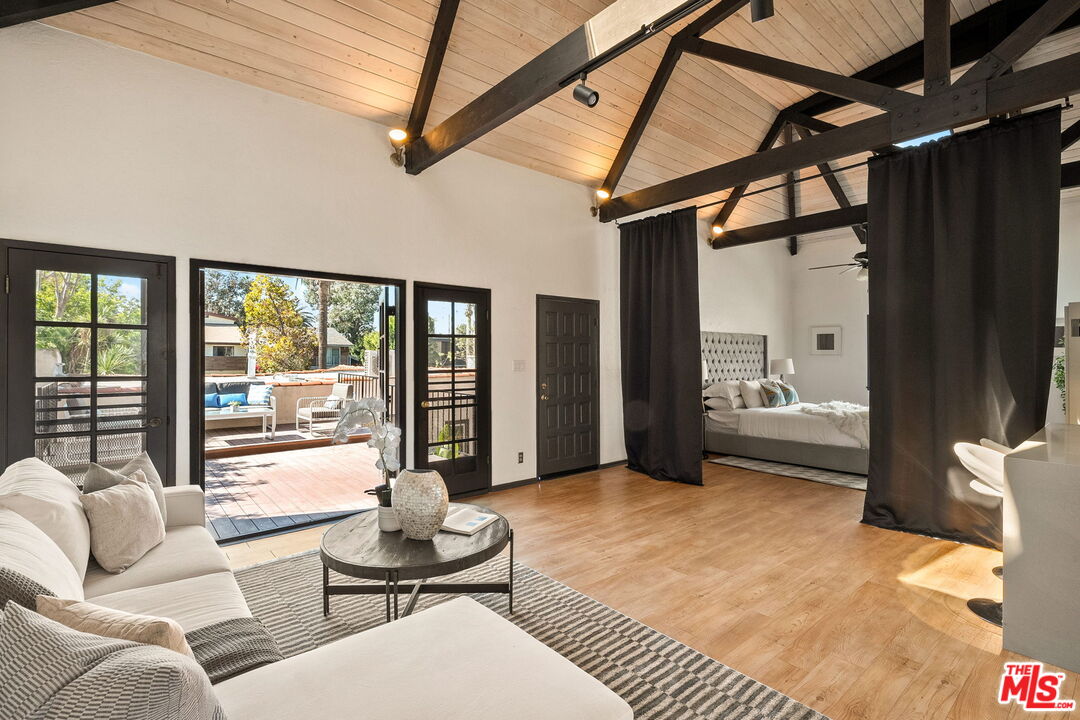 Venice Spanish Charmer with Guest Units & Artistic Flair. Discover this enchanting 1929 Spanish-style gem ideally located in the heart of Venice. Step into a sun-drenched living room featuring a stunning barrel ceiling and classic wood-burning fireplace, with French doors opening to a private, enclosed front patio...perfect for morning coffee or evening gatherings. The spacious formal dining room flows into a partially upgraded kitchen, ideal for entertaining or everyday living. Beautiful hardwood floors run throughout, adding warmth and character to every room. A back door leads to a covered patio and a fully detached two-story auxiliary structure. The upper level offers a bright, open-concept loft-style guest unit with soaring wood-plank ceilings, exposed truss beams, skylights, and French doors leading to a private wood deck. With its abundance of natural light and artistic design, this flexible space is perfect for a creative studio, home office, or guest retreat. Downstairs, a separate unit features a cozy bedroom, sitting area, and bath offering even more versatility for guests, extended family, or rental income potential. This exceptional Venice property blends timeless Spanish charm with modern flexibility...an ideal opportunity in one of L.A.'s most vibrant coastal communities.