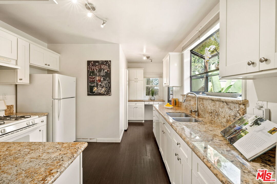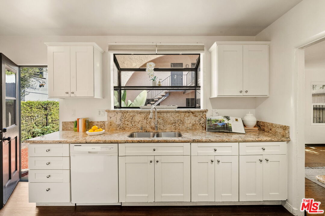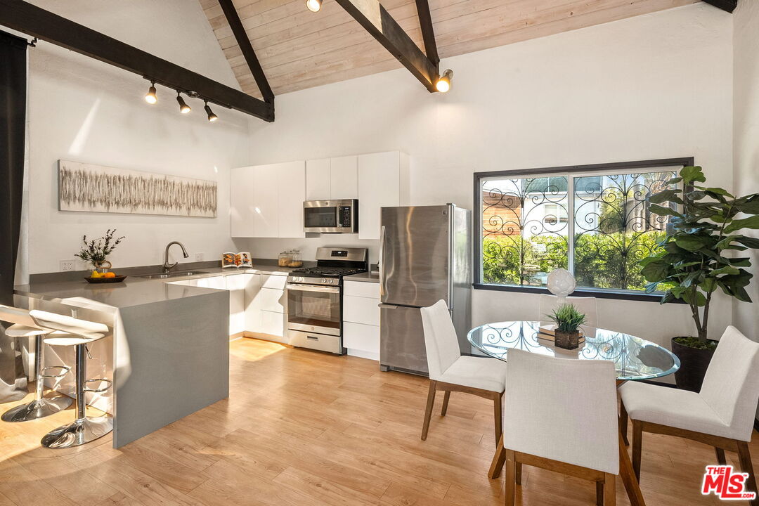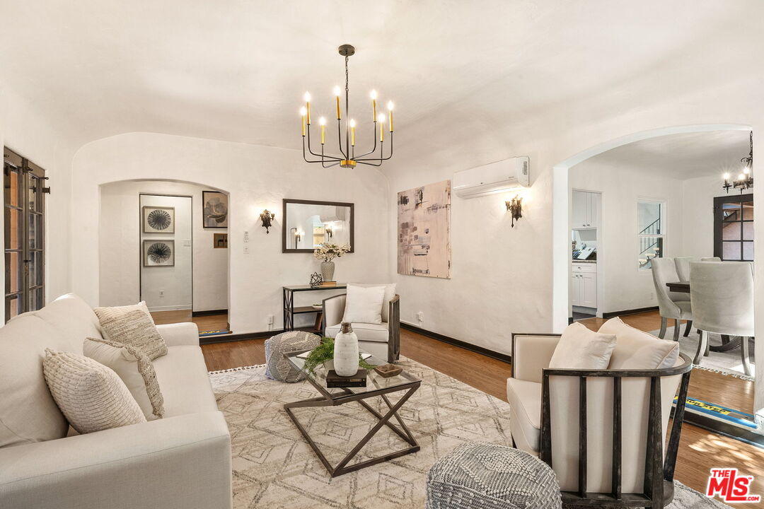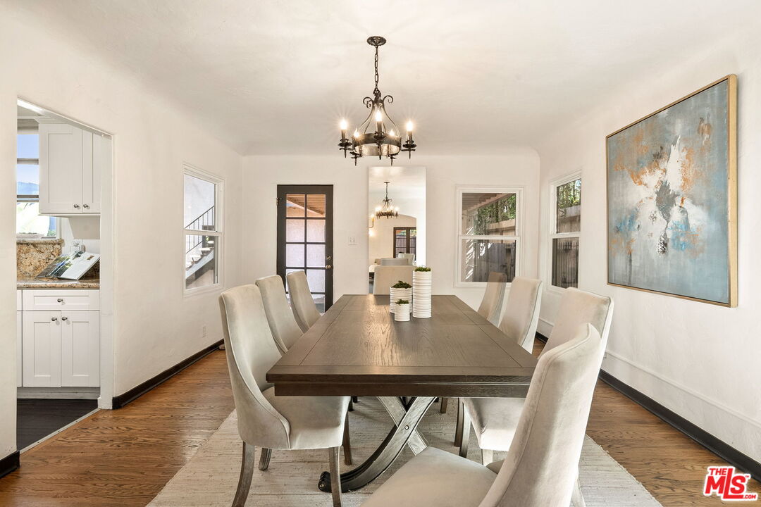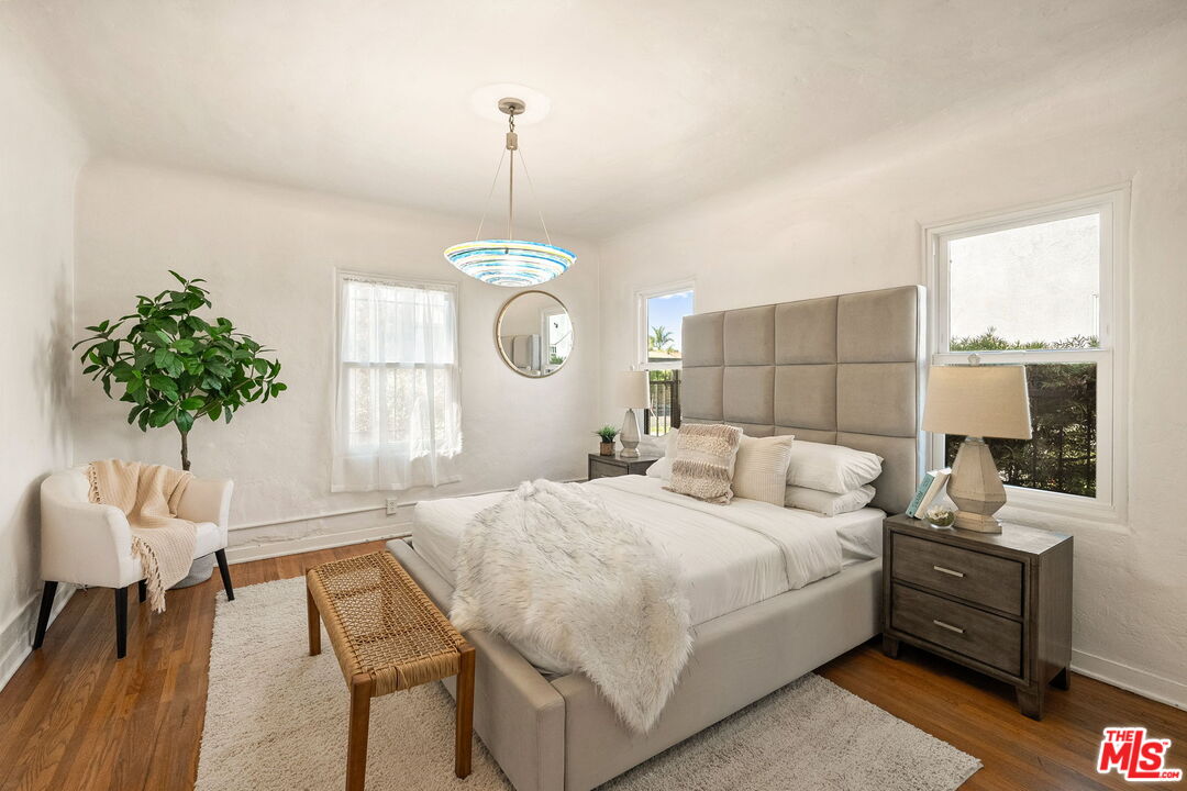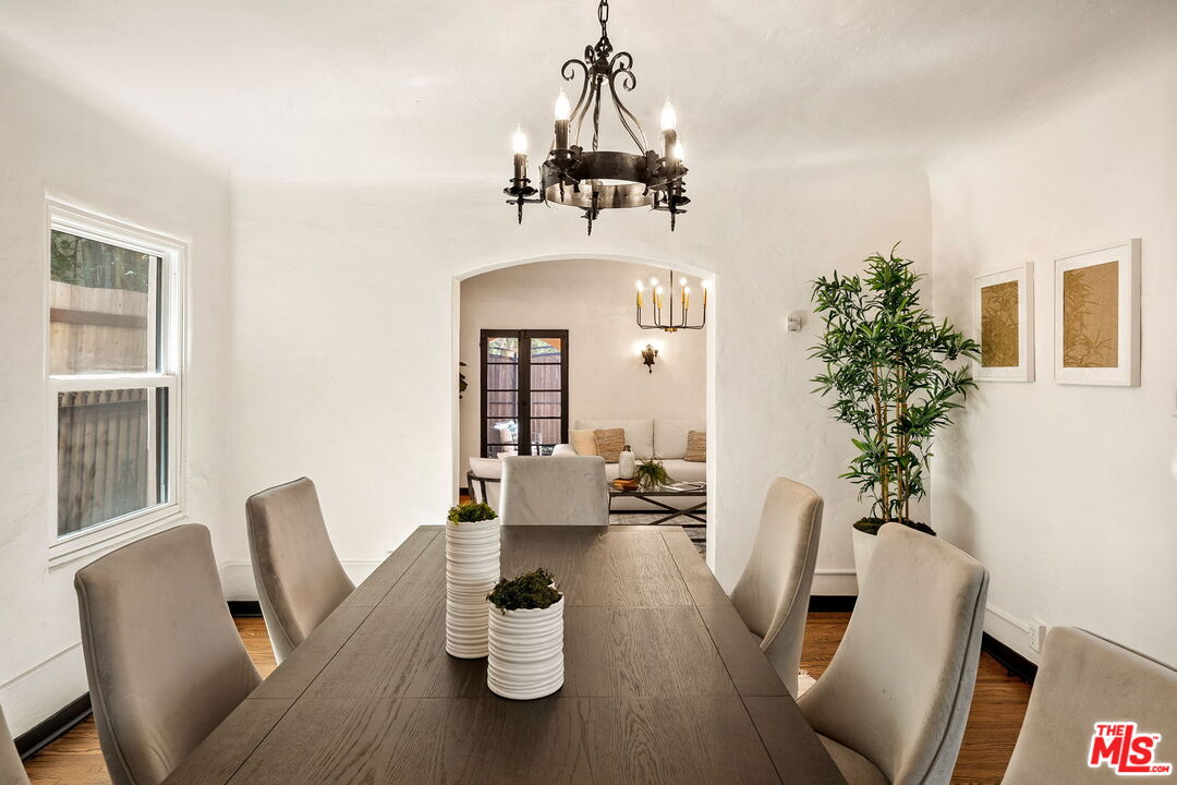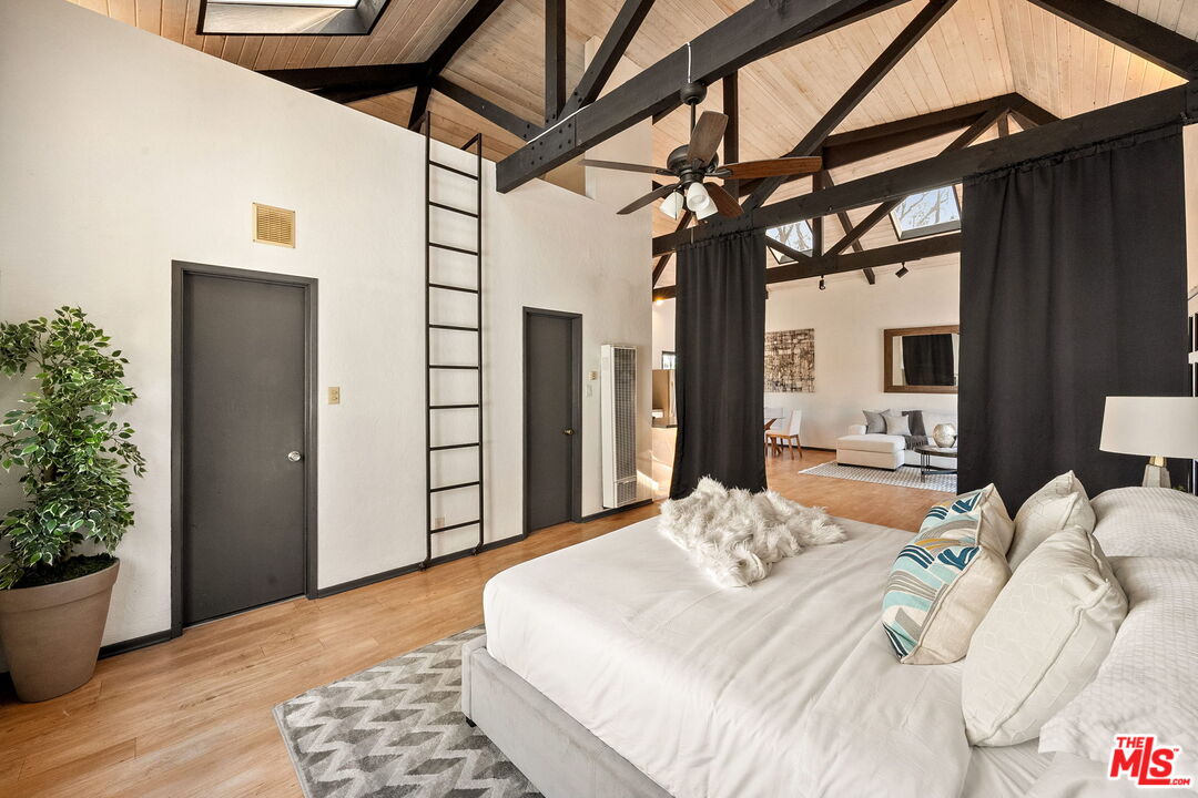Venice Spanish Charmer with Guest Units & Artistic Flair. Discover this enchanting 1929 Spanish-style gem ideally located in the heart of Venice. Step into a sun-drenched living room featuring a stunning barrel ceiling and classic wood-burning fireplace, with French doors opening to a private, enclosed front patio...perfect for morning coffee or evening gatherings. The spacious formal dining room flows into a partially upgraded kitchen, ideal for entertaining or everyday living. Beautiful hardwood floors run throughout, adding warmth and character to every room. A back door leads to a covered patio and a fully detached two-story auxiliary structure. The upper level offers a bright, open-concept loft-style guest unit with soaring wood-plank ceilings, exposed truss beams, skylights, and French doors leading to a private wood deck. With its abundance of natural light and artistic design, this flexible space is perfect for a creative studio, home office, or guest retreat. Downstairs, a separate unit features a cozy bedroom, sitting area, and bath offering even more versatility for guests, extended family, or rental income potential. This exceptional Venice property blends timeless Spanish charm with modern flexibility...an ideal opportunity in one of L.A.'s most vibrant coastal communities.
